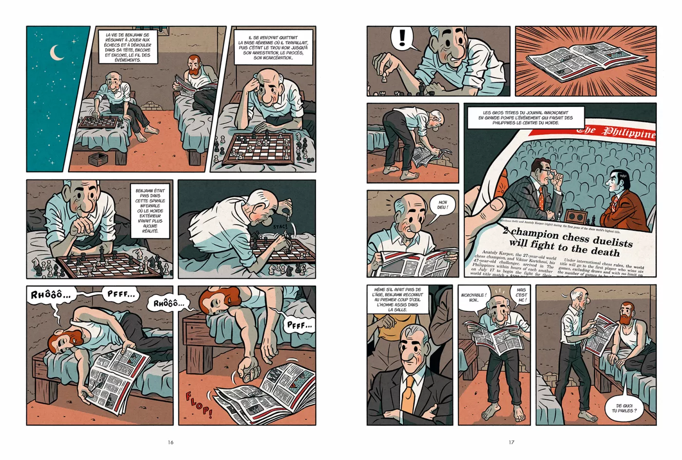 Dessinateur et illustrateur, le catalan Toni Carbos a adapté en bande dessinée le roman de Javier Cosnava : 33 años en prisión (non traduit en français) autour d’une partie d’échecs mythique, un combat entre l’URSS et l’Occident.